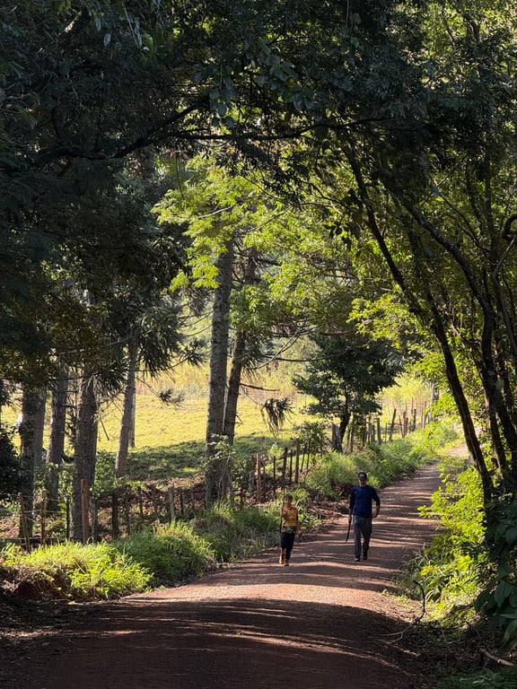 A caminhada terá início às 8:00 - serão 3 trajetos, com nível médio de dificuldade. Na primeira parte, todos os trajetos passam por 1,5km de trilha. Após, a caminhada/corrida segue por estradas de chão do município, passando por caminhos com beleza incrível, com mirantes naturais, igreja de madeira e frutas na beira da estrada. No final de todos os trajetos teremos 1,5km de trilha subindo por dentro de propriedades privadas.